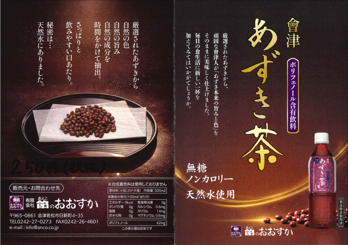 続きましては会津の人はみんな知っている餡のおおすかさんのあずき茶です。この度商品リニューアルとなりまして当店でも取り扱いをすることとなりました。小豆のほくほくしたコクとまろみが何より魅力。焼酎のあずき茶割りも会津の定番です。500mlのペットボトルワンサイズ展開、賞味期限も10か月に伸びて皆様へご紹介いたします。オンラインショップではバラの1本からお求め頂けます。お酒と一緒にどうぞ御用命ください。